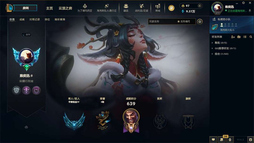 段位:377级 华贵铂金IV
