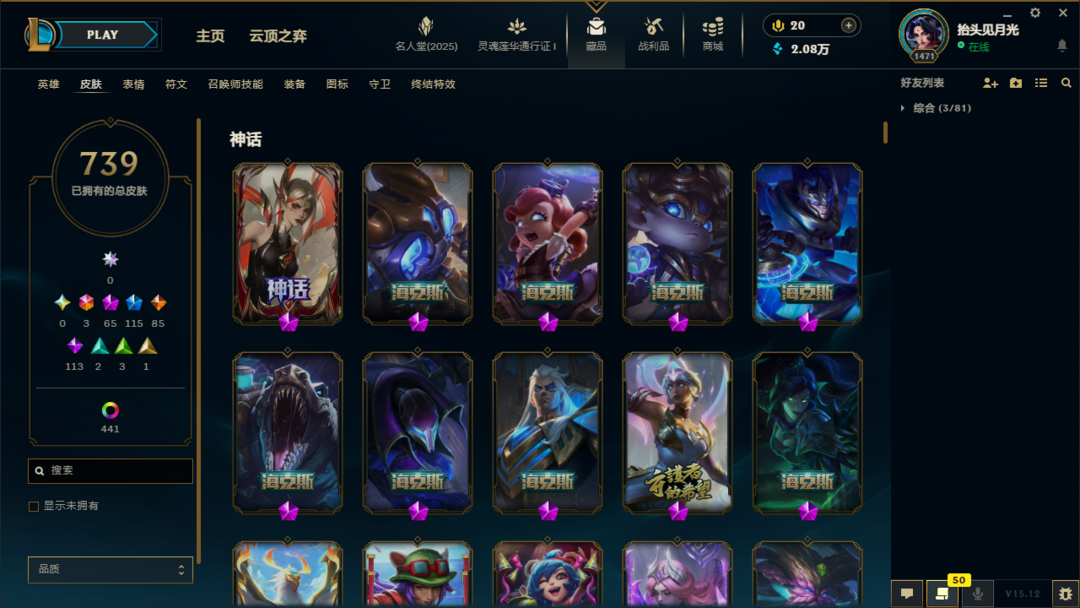 ██ 全英雄 1400皮丨70神话丨可排位丨IG卡莎丨冰雪皎月丨女帝格温丨斗魂莎弥拉丨神龙李青亚索