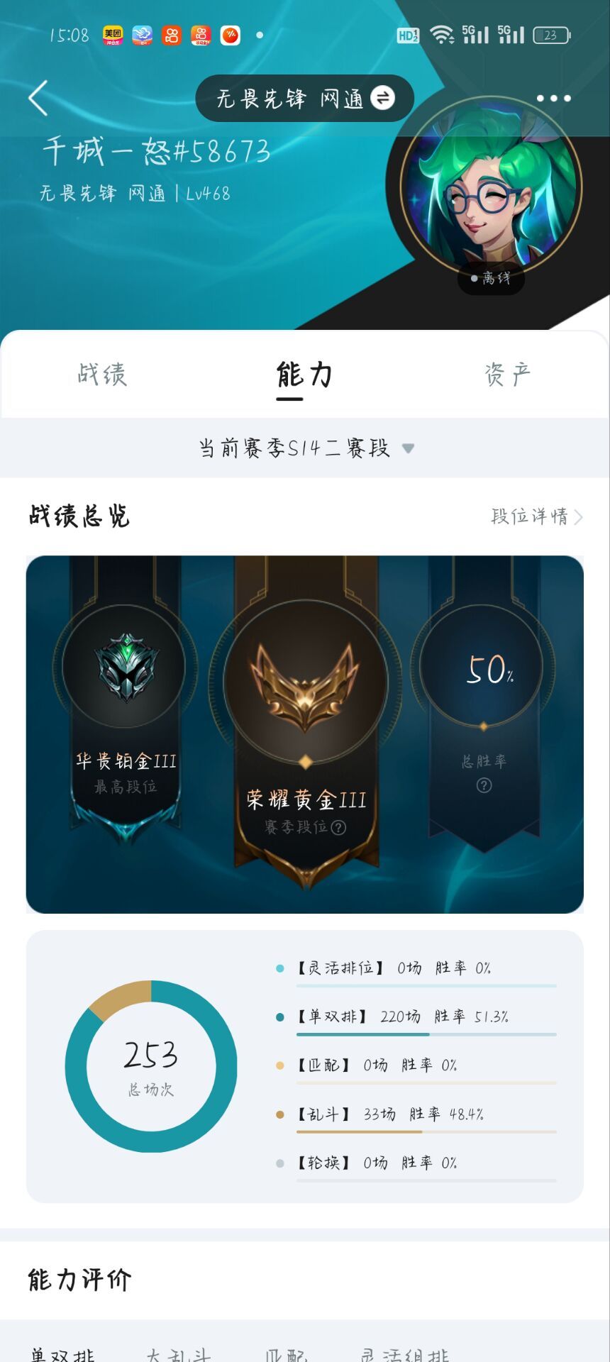 段位:55级 荣耀黄金IV