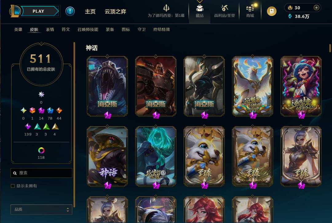 【黑色玫瑰】全皮600★原皮511★炫彩222★臻彩14★段位实时★真实描述★