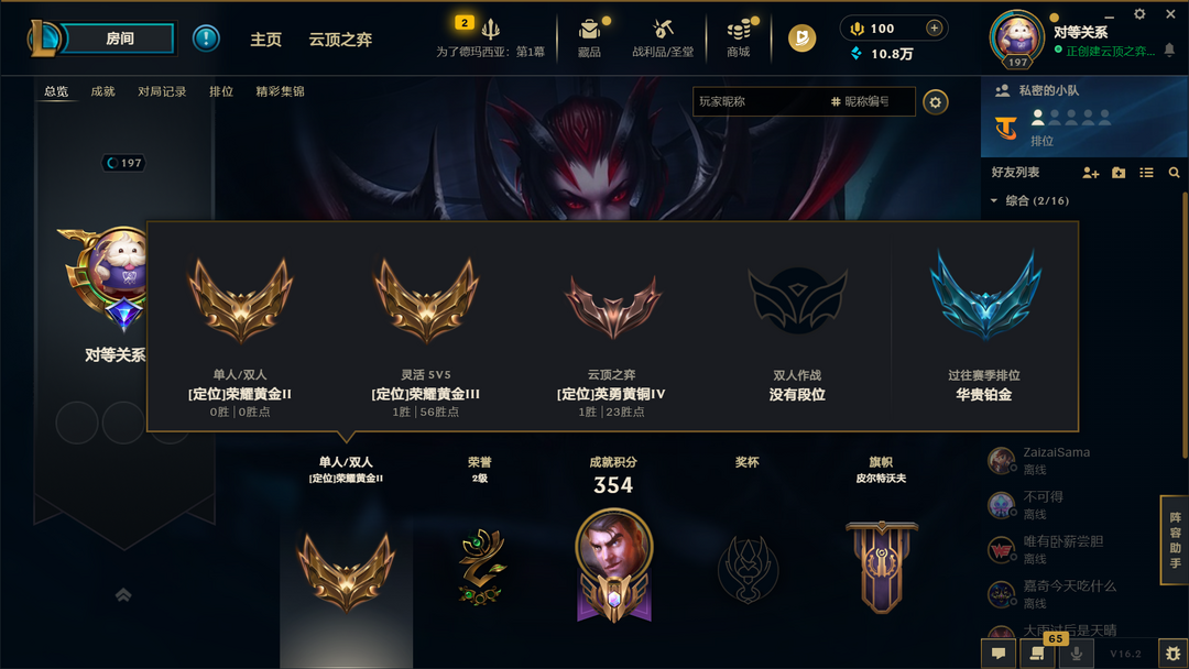 段位:197级 荣耀黄金II