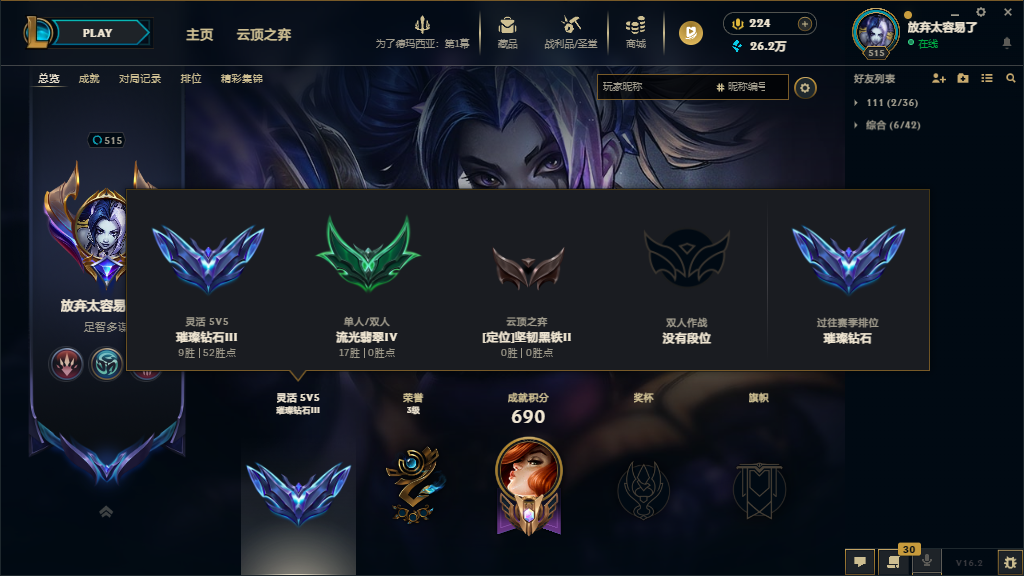 段位:524级 流光翡翠IV