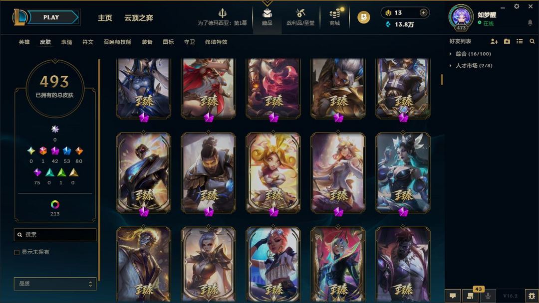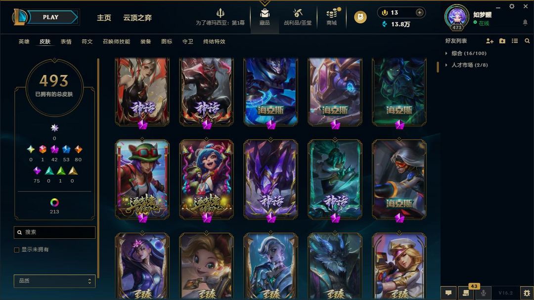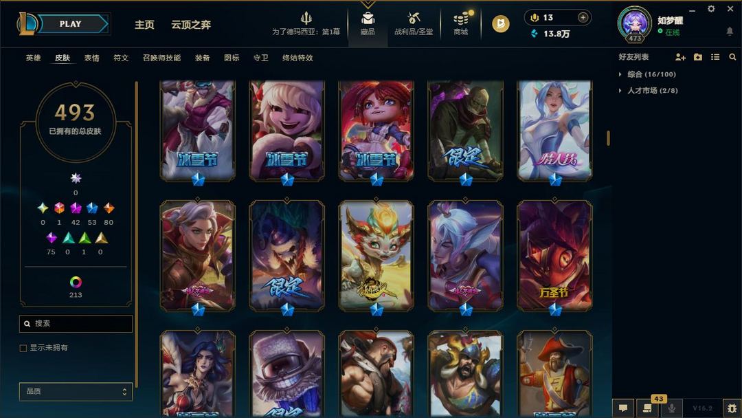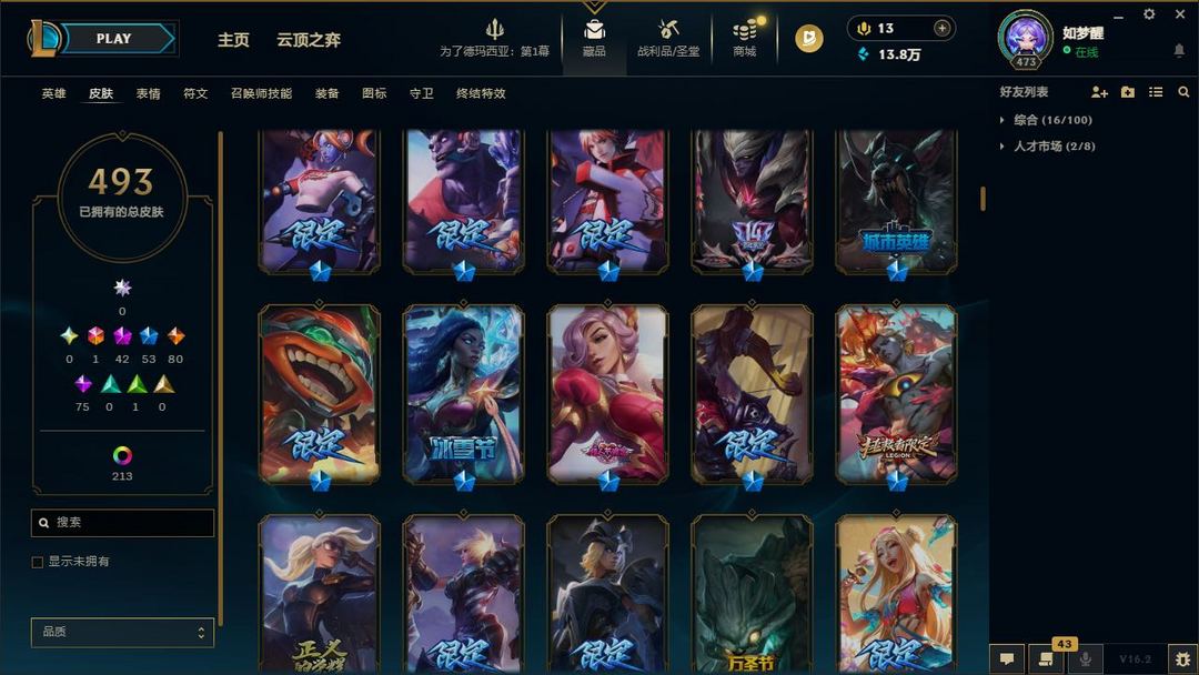 【LOL大王】700P乄493原皮乄213炫彩乄42神话乄53限定乄斗魂佛耶戈