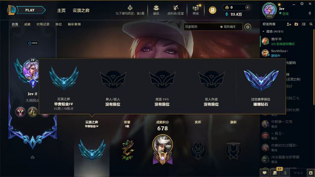 段位:500级 璀璨钻石IV