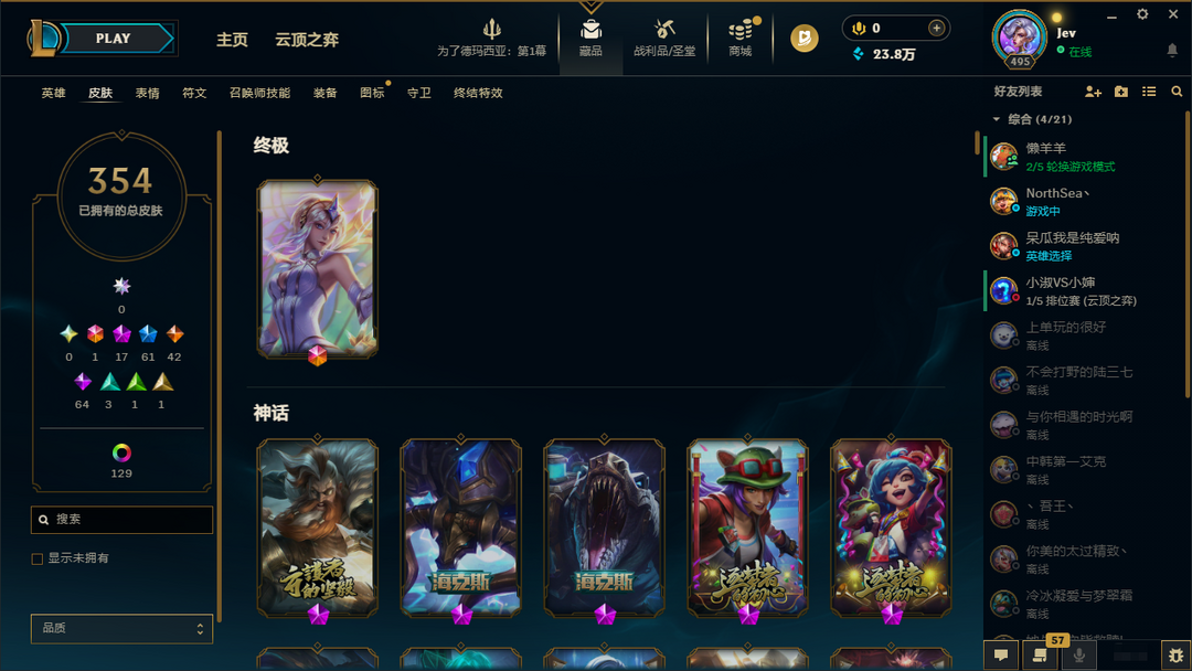 皮肤:354