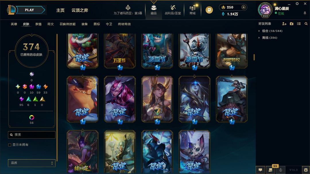 【LOL大王】400P乄374原皮乄56炫彩乄10神话乄59神话乄替父从军乄玉剑女刀