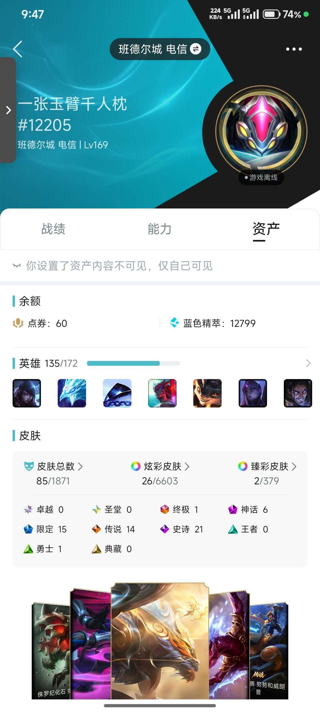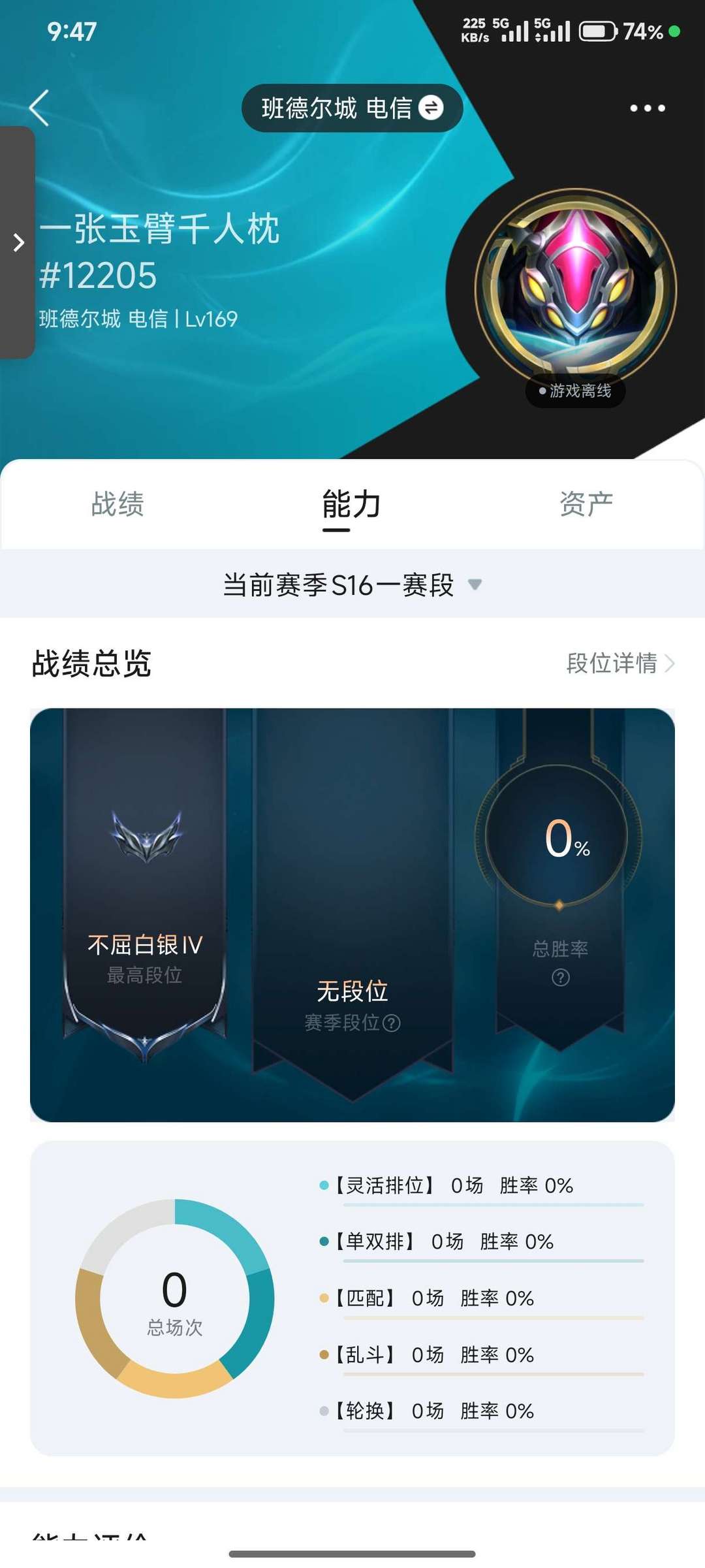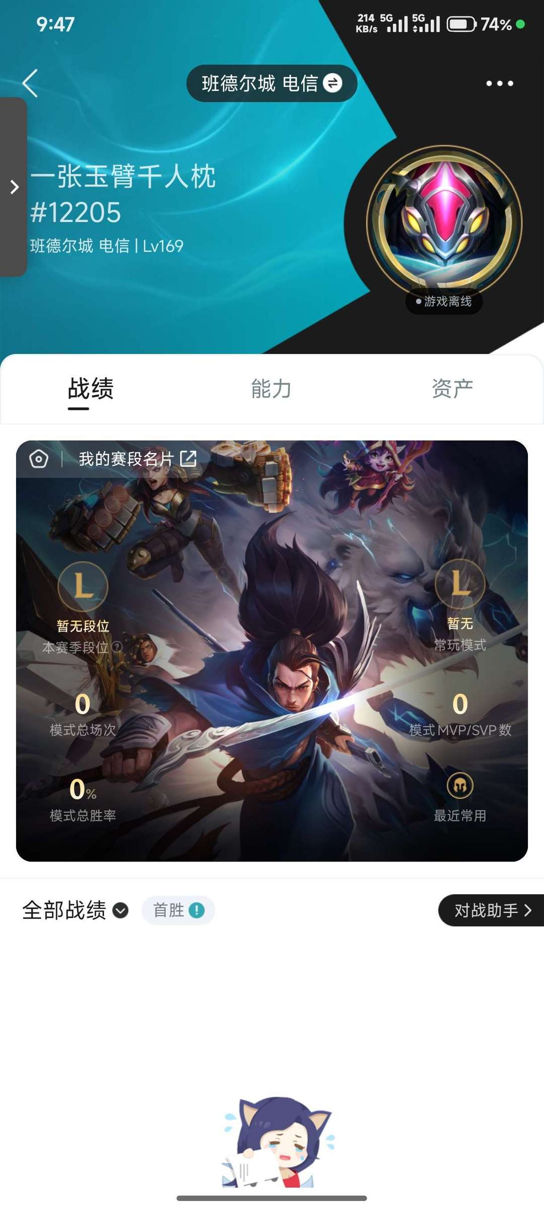 段位:169级 当前赛季无