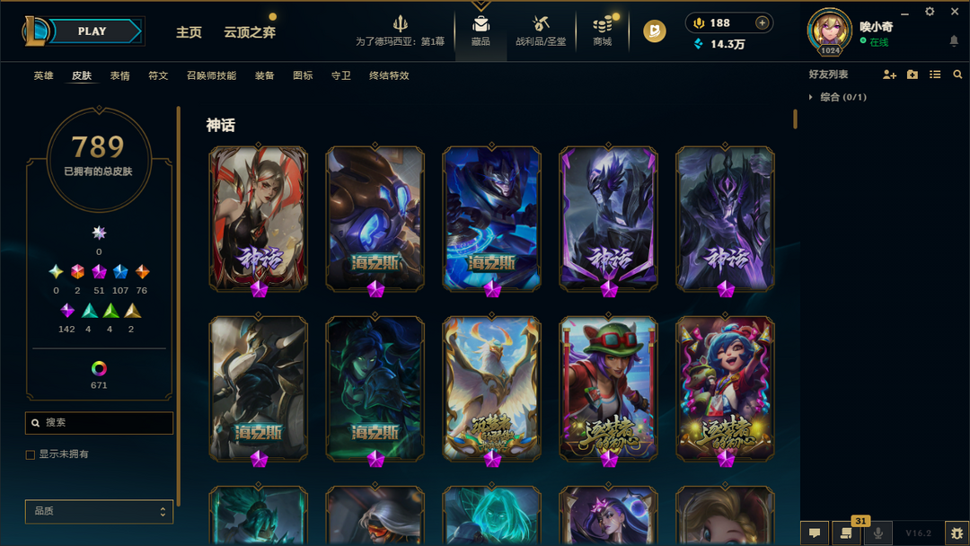 ██ 全英雄 1500皮丨60神话丨可排位丨金卡莎丨神龙李青丨甜心格温丨玉剑男女刀丨莲华瑞文莉莉娅