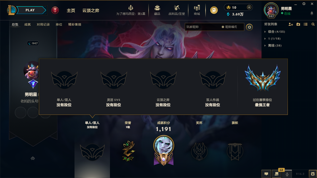 上赛季最强王者边框旗帜名人堂卡莎皮肤亚索永恩盖伦神话皮圣堂佛爷
