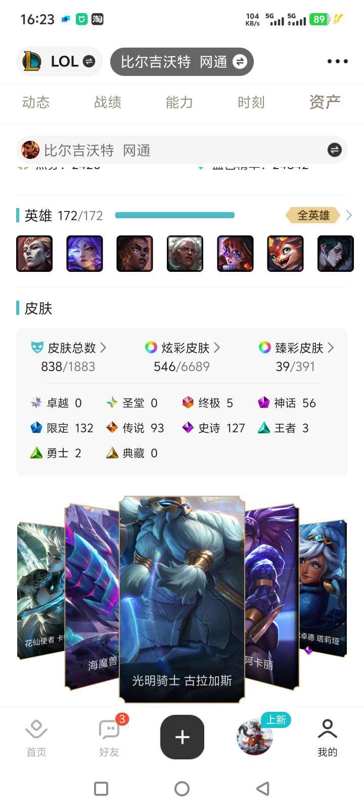 - 网通比尔吉沃特,全英雄皮肤多多,低价可租