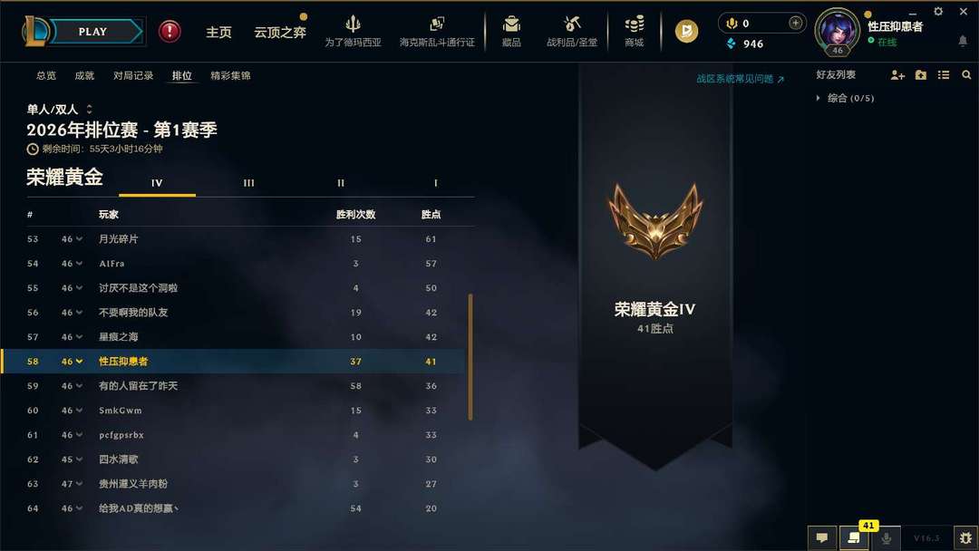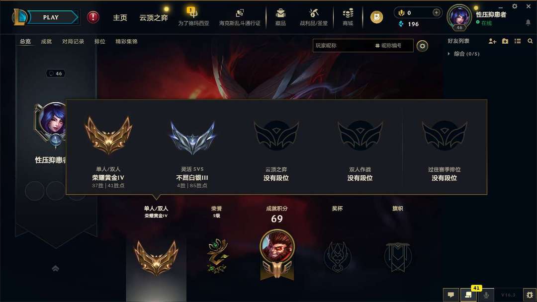 段位:49级 荣耀黄金IV