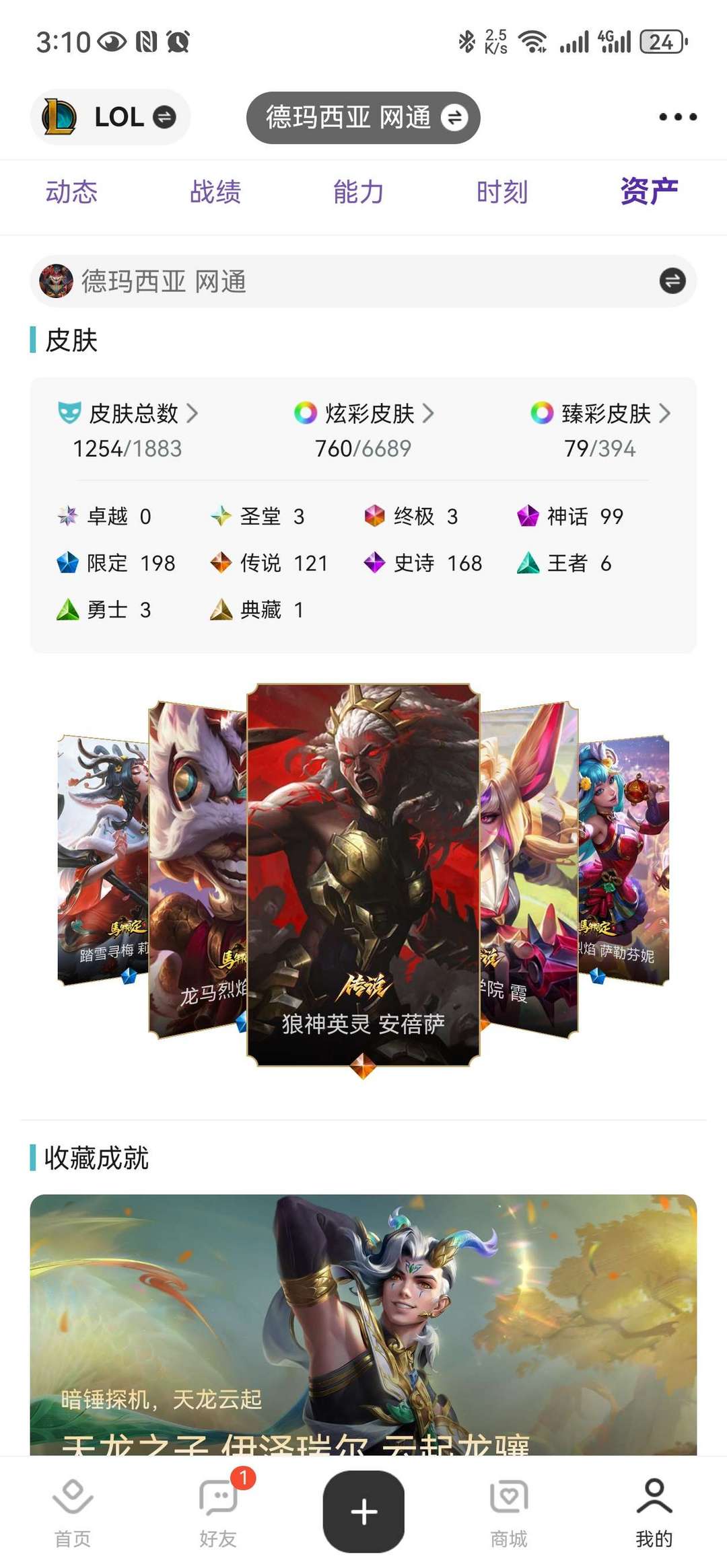 圣堂金克斯,佛耶戈,铁男,神话龙王,1200+皮肤,99神话,120传说,79臻彩