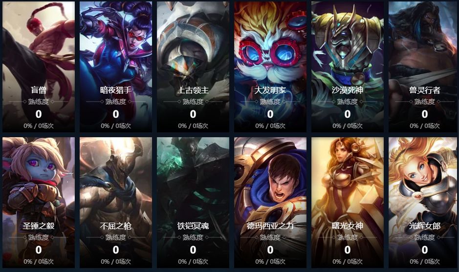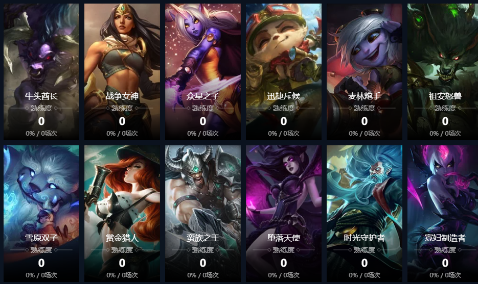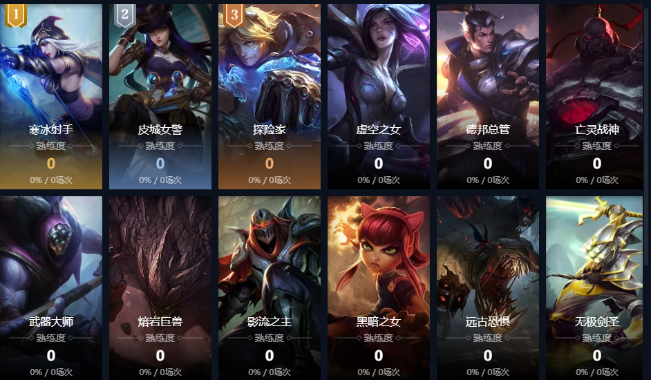 探险家;狂野女猎手;虚空之女;寒冰射手;皮城女警;德邦总管;亡灵战神;武器大师;熔岩巨兽;齐天大圣;