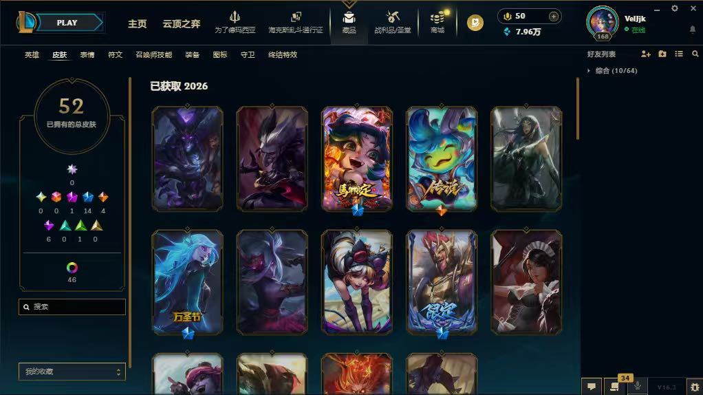 皮肤:52