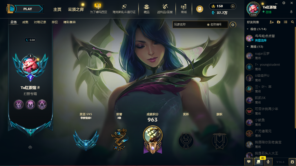 段位:538级 华贵铂金IV