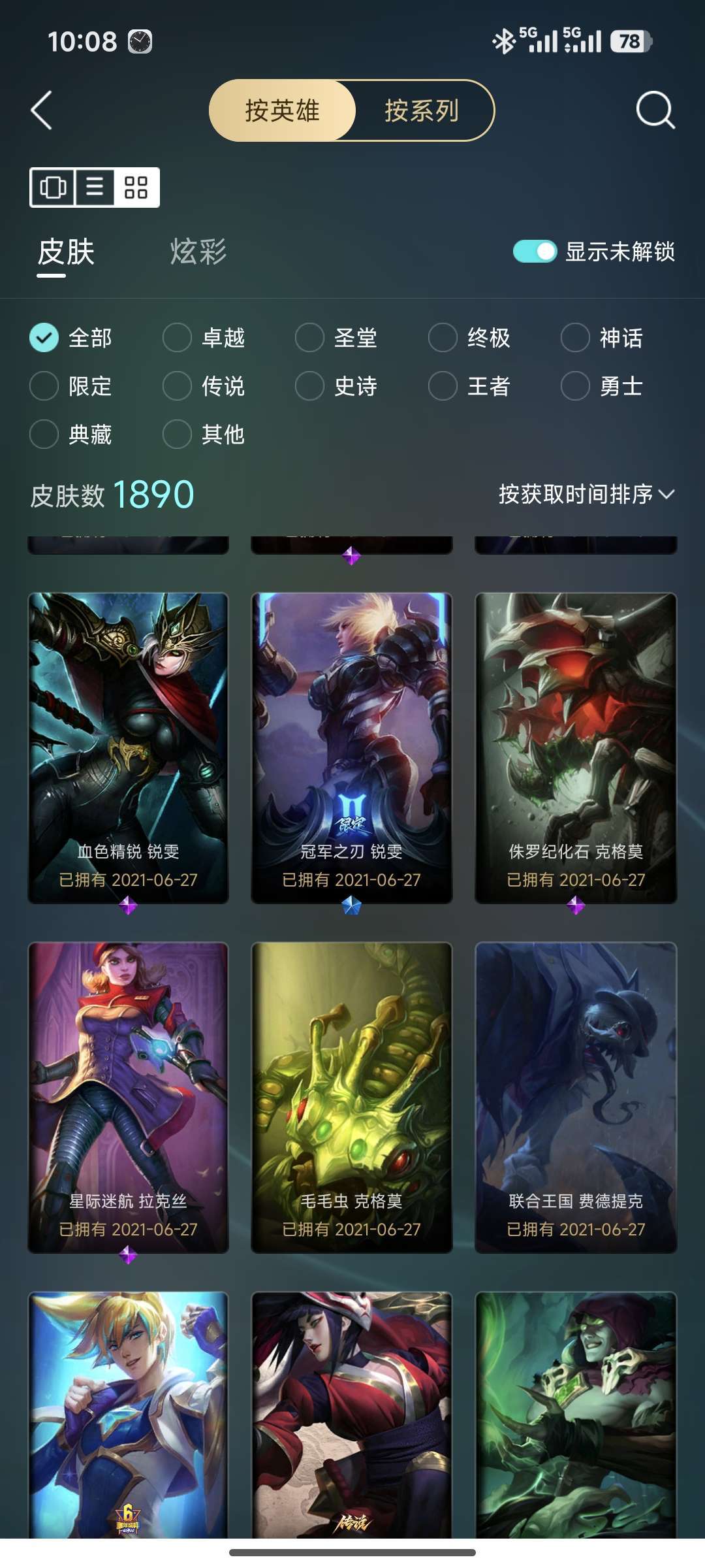 01折、200+皮、黑色玫瑰、28传说、2神话、2终极
