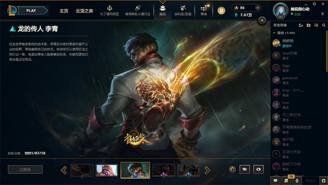 装备描述:皮肤:心之钢 奎桑提;斗魂觉醒 格温;机神苍狼 瑟提;至臻 心之钢 永恩;海之歌 永恩;黎明使者 薇古丝;斗魂觉醒 派克;女帝 芮尔;至臻 莲华温泉 厄斐琉斯;小蜜蜂 妮蔻;星之守护者 妮蔻;太空律动 “创乐之神” 奥恩;甜心之羽 霞;暮星之羽 霞;绝息圣堂 洛;巴德·吟游诗人;永恒之森 巴德;糖果之王 艾翁;上古战魂 雷克塞;幻灵巨熊 俄洛伊;虚空使者 俄洛伊;破败解封 锤石;至臻 未来战士 锤石;深渊恐惧 锤石;小蜜蜂 悠米;战斗校长 悠米;司马懿 仲达;源代码 娜美;海皇姬 娜美;奥德赛 亚托克斯;腥红之月 亚托克斯;狂鲨 亚托克斯;霸天剑魔 亚托克斯;源计划:裁决 蔚;女警官 蔚;霓虹杀拳 蔚;冲击之刃 奇亚娜;真实伤害 奇亚娜;战场BOSS 奇亚娜;未来战士 艾克;真实伤害 艾克;不给糖就捣蛋 艾克;任性学霸 艾克;时之砂 艾克;冠军之隐 劫;SKT T1 劫;胜利枪神 卢锡安;西部魔影 卢锡安;源计划:雷 卢锡安;至臻 月蚀骑士 赛娜;斗魂觉醒 佛耶戈;纳财大帝 塔姆;海牛大大 塔姆;五星大厨 塔姆;幻灵战斗猫 金克丝;觅心萝莉 金克丝;源计划:疯狂 金克丝;圣诞捣蛋鬼 金