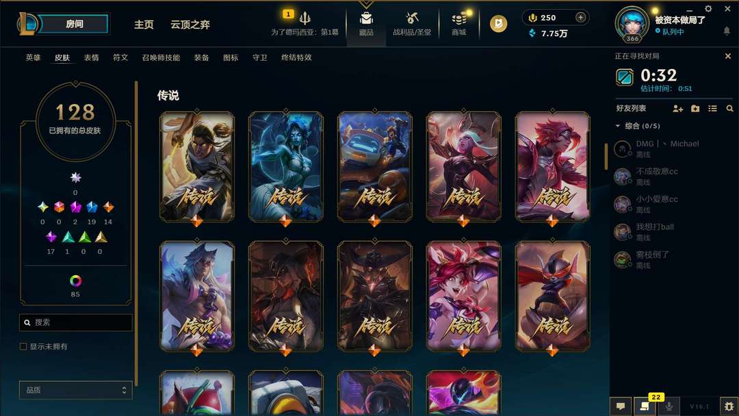 ❤️艾欧尼亚❤️钻石❤️可排位❤️全英雄❤️皮肤多❤️
