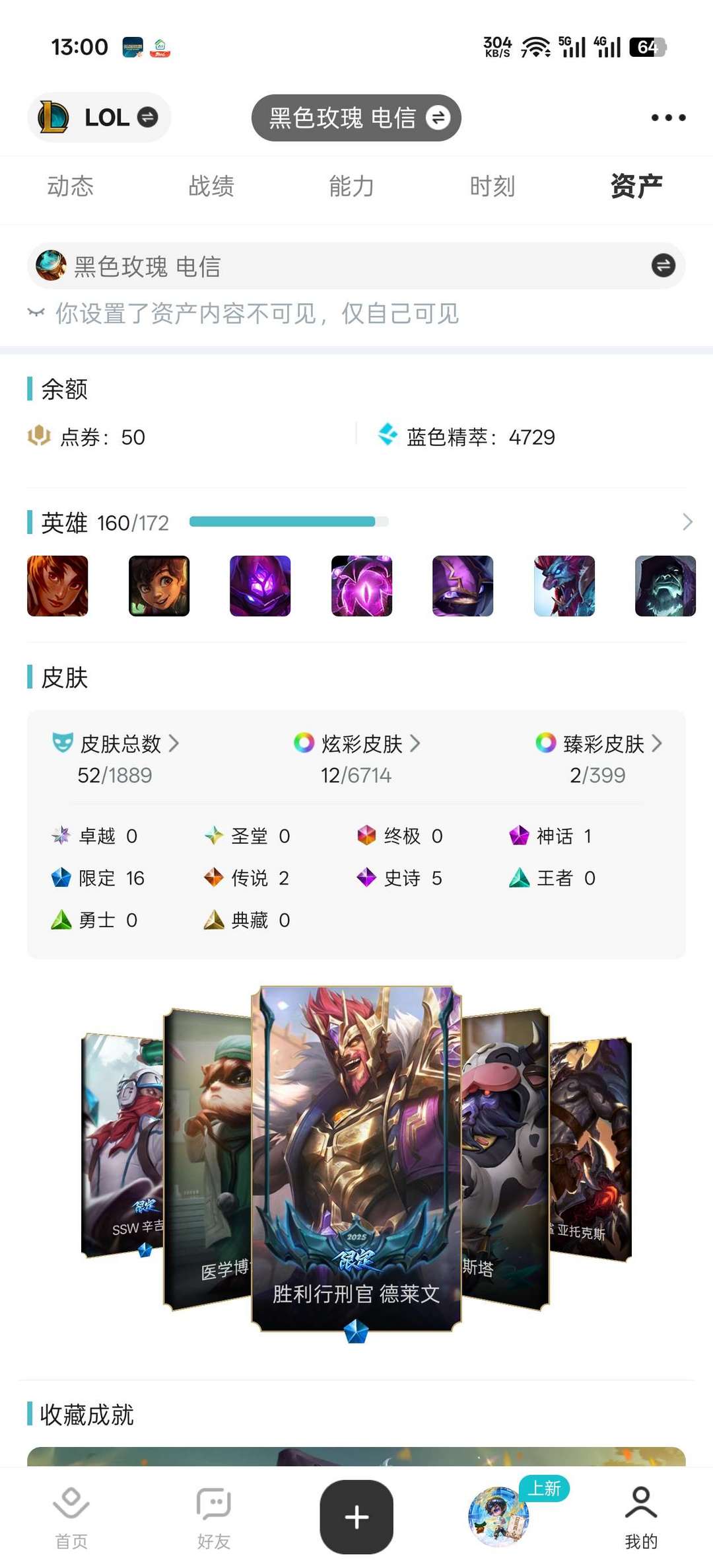 黑色玫瑰单双组排均为黄金,英雄全皮肤50多个