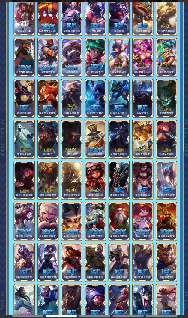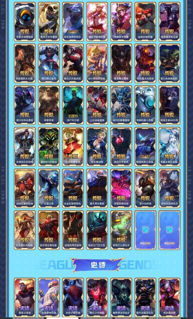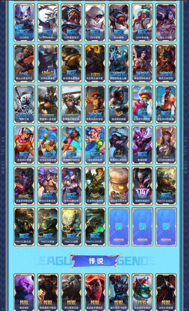 艾欧尼亚单双钻三可排位 579个皮肤95个限定47个传说140个史诗183炫彩