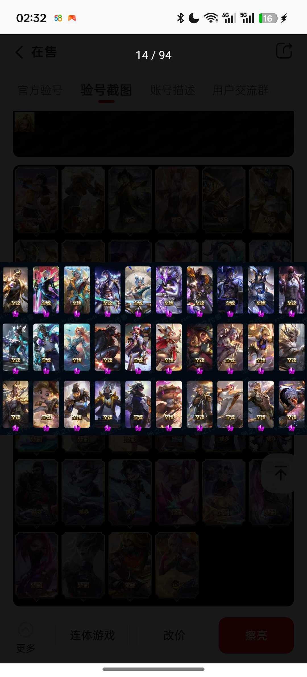装备描述:帮忙收藏一下账号~谢谢板板~ 希望各位租客老板能好好对待我的号,【不要挂机送人头】谢谢老板支持与厚爱~~有冻结的半个小时之内都能处理哦~如果刚租遇到游戏中就是上个租客没打完,宝宝可以等等或者选择退款。登录失败可以换普通登录,祝宝宝玩的开心~