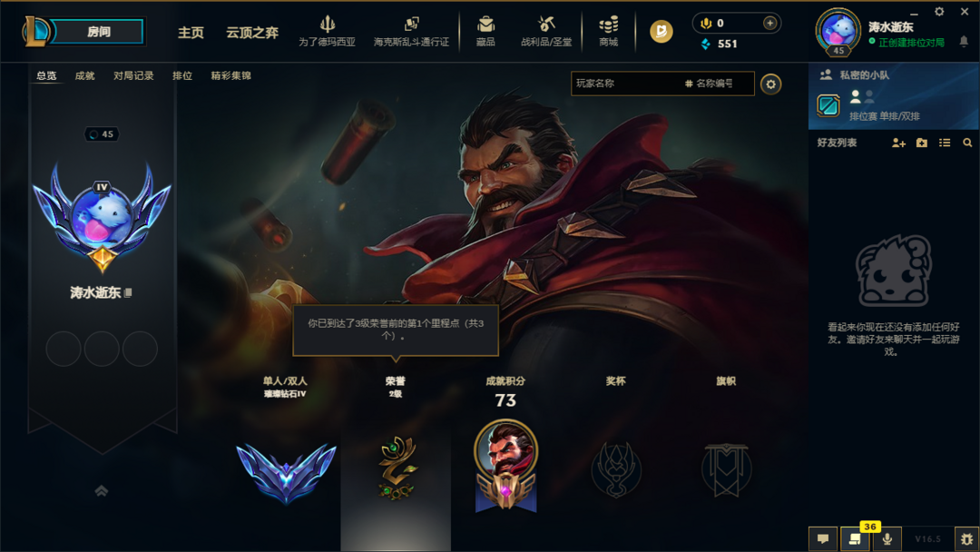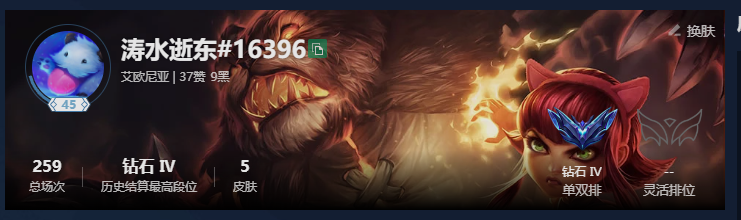 艾欧尼亚单双钻四 纯段位号 英雄皮肤较少 可排位