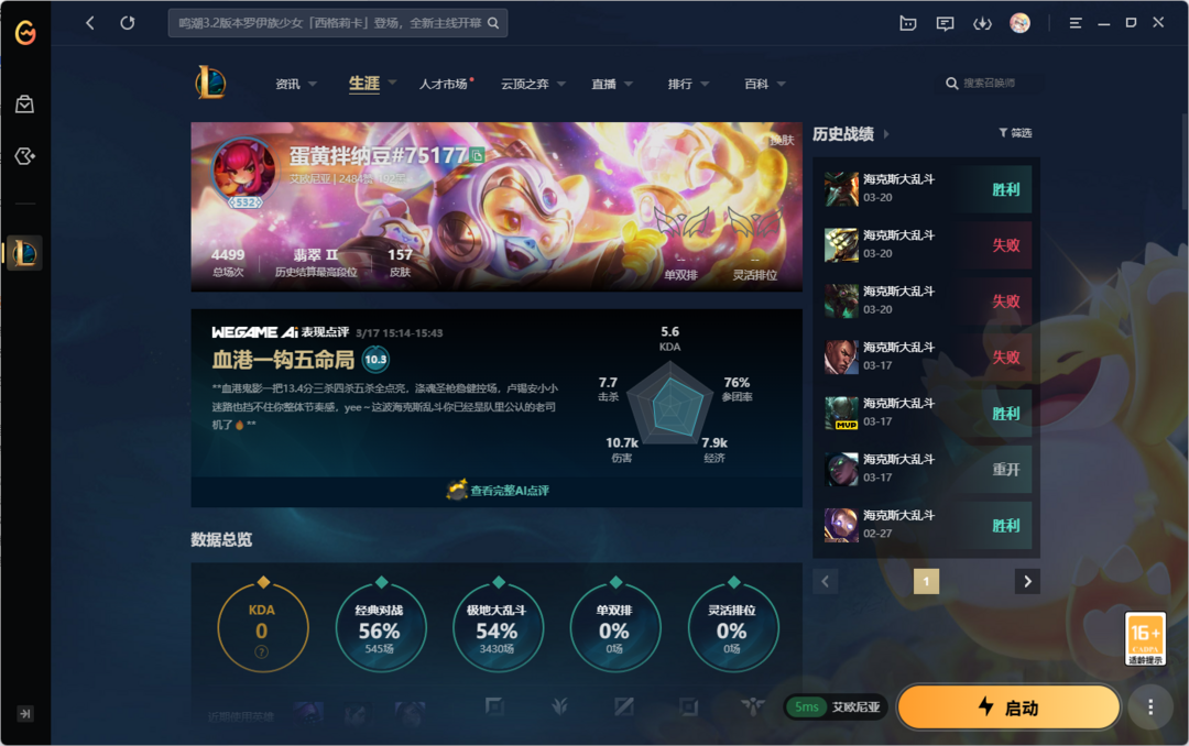 ★艾欧尼亚★禁排位★电一海克斯大乱斗妹子号虐菜号