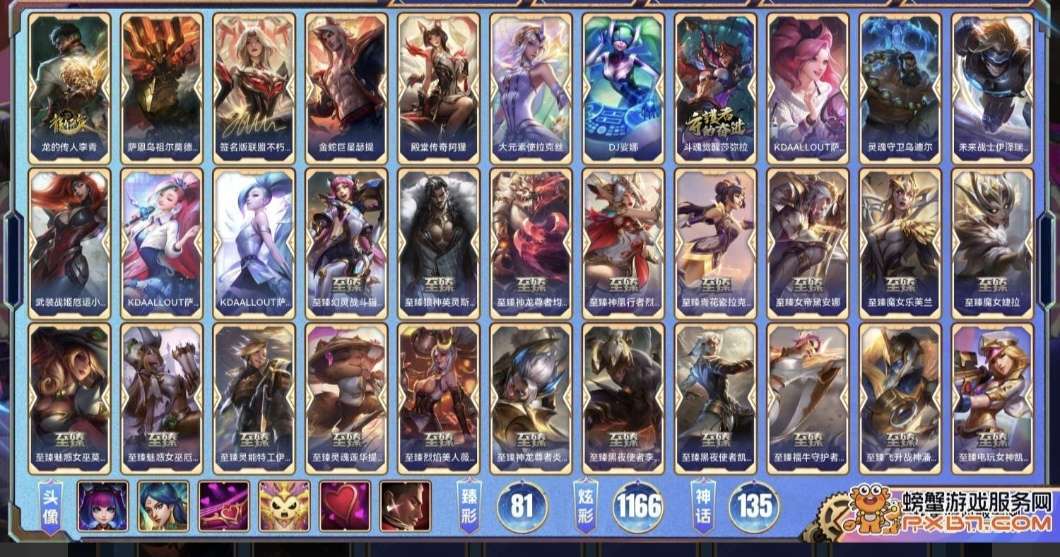 装备描述:172英雄 2835皮肤总数(原皮+炫彩) 1671皮肤 2卓越 2圣堂 7终极 135神话 324限定 81臻彩 1166炫彩 128传说 215史诗 单双荣耀黄金/灵活华贵铂金 账号等级:1316;【圣堂皮肤2】 金蛇巨星瑟提 萨恩乌祖尔莫德凯撒【卓越皮肤2】 签名版联盟不朽阿狸 殿堂传奇阿狸【终极皮肤9】