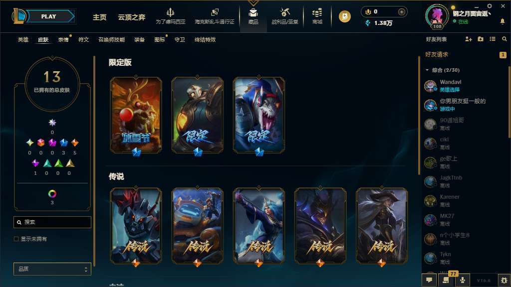 皮肤:13