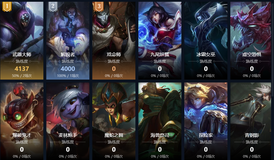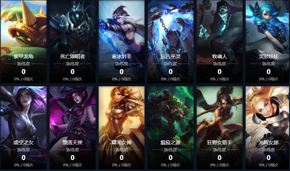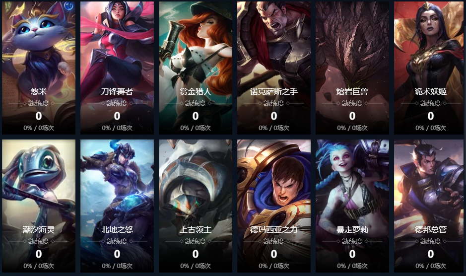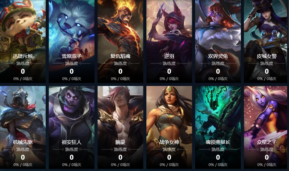 诺克萨斯之手;德玛西亚皇子;德邦总管;赏金猎人;刀锋之影;黑暗之女;远古恐惧;无极剑圣;牛头酋长;亡