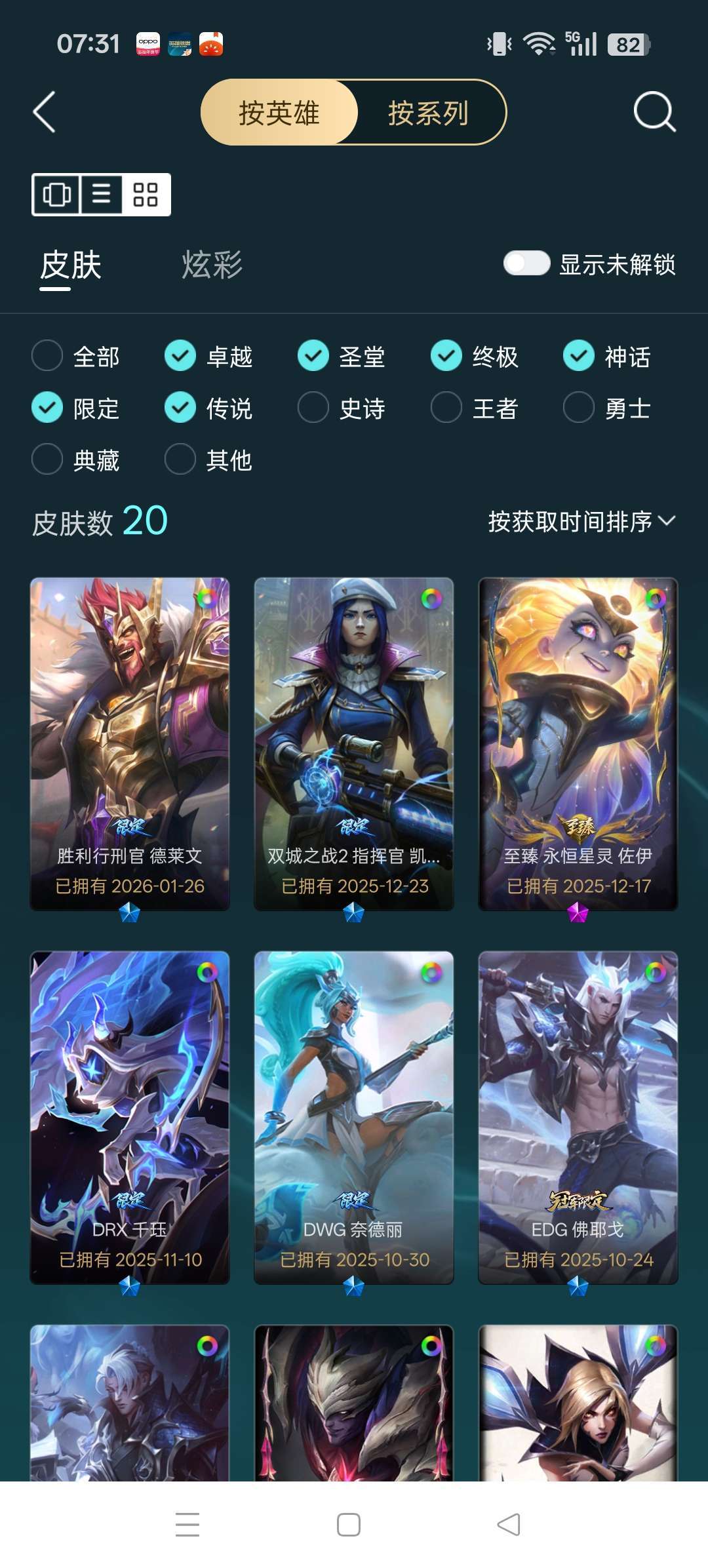 edg厄斐琉斯佛耶戈,drx阿卡丽千珏,dwg卡牌豹女,ig卡莎,ssg纳尔 ,如有冻结请等五分钟