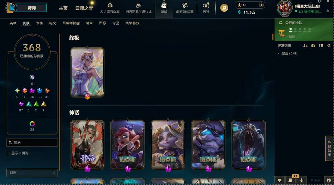 【黑色玫瑰】368P全英雄可排位至臻海克斯多⭐海克斯科技雷克顿⭐元素拉克丝⭐无头骑士 人马
