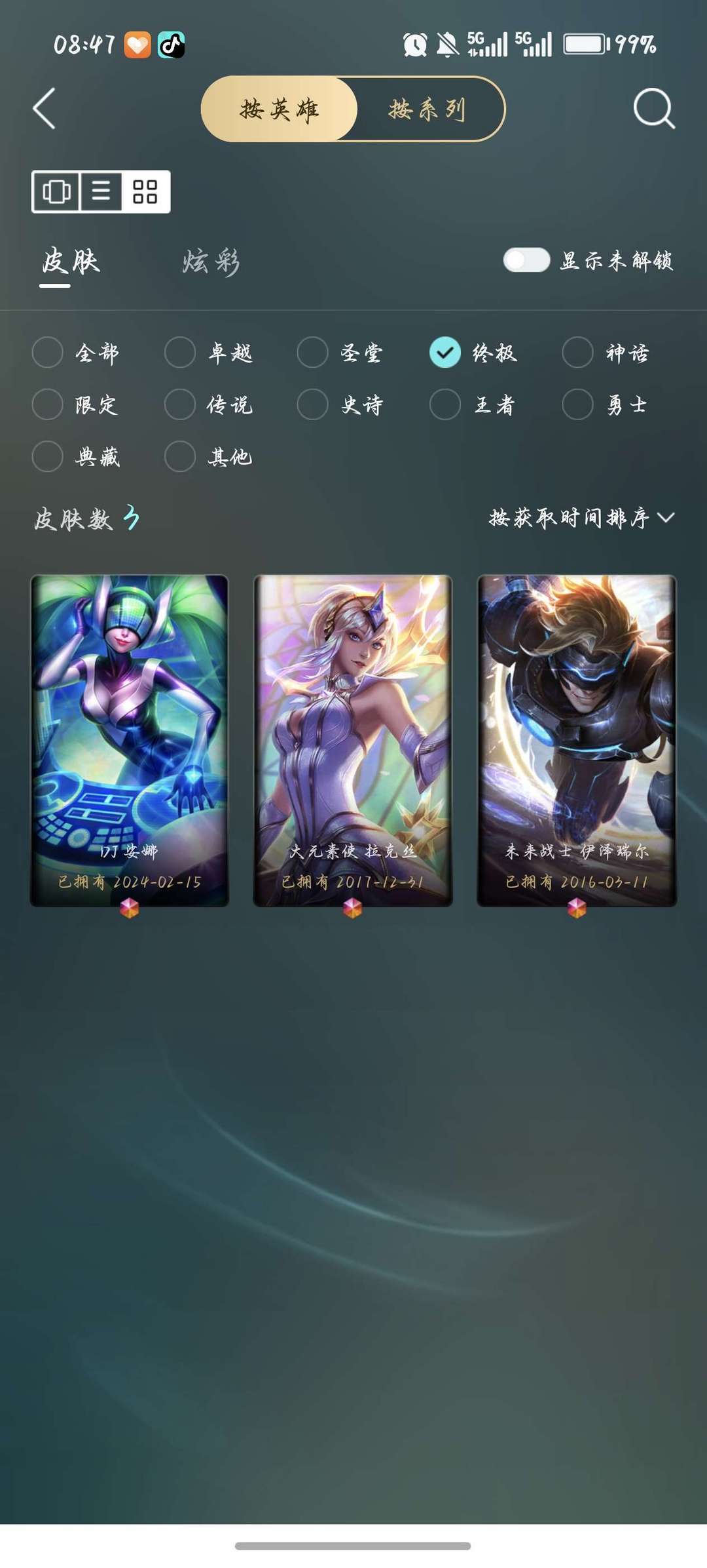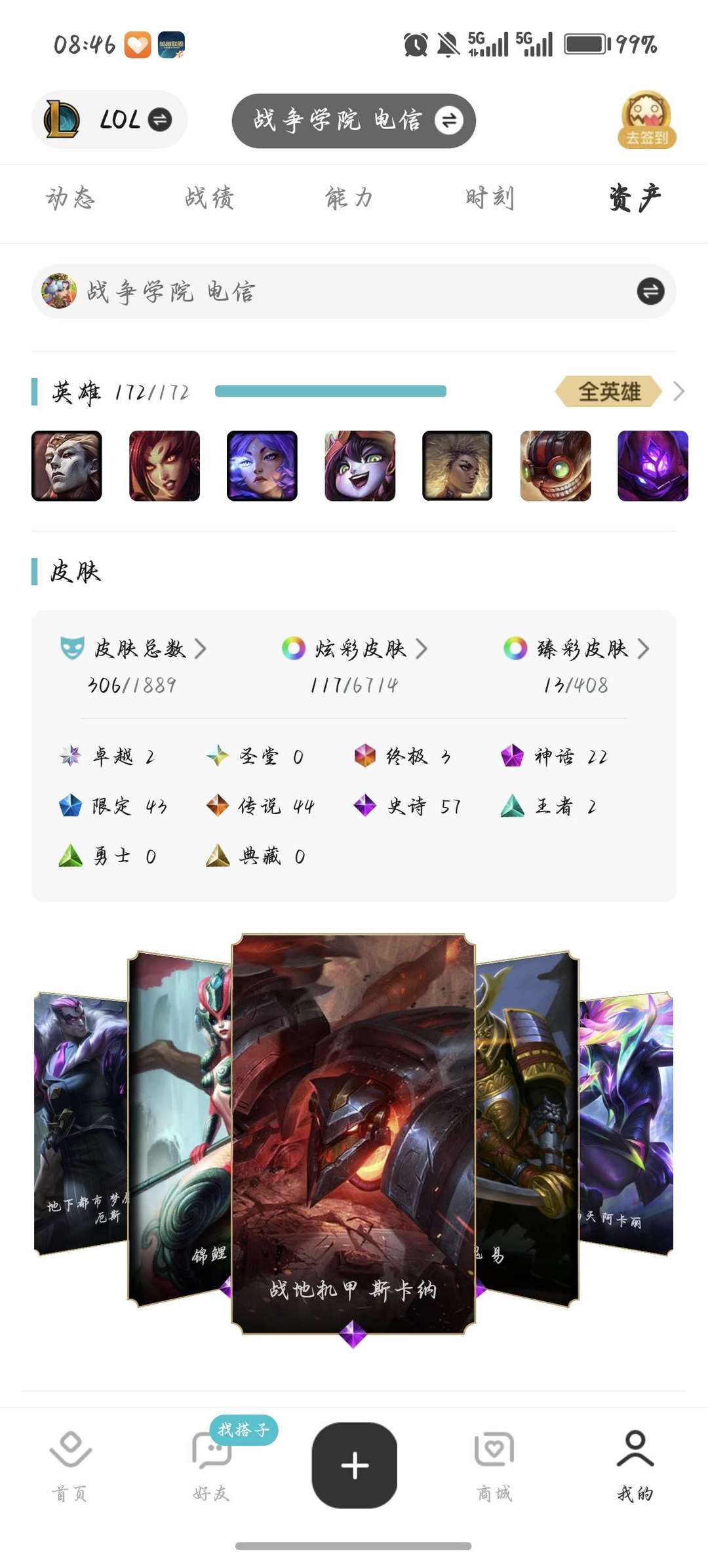 306个皮肤,龙虾,水晶螳螂,女帝格温,t1至臻塞拉斯