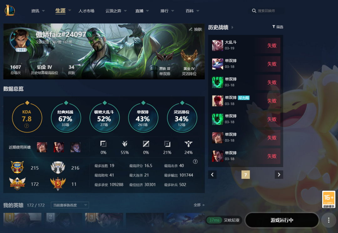 游戏区服:英雄联盟-艾欧尼亚-艾欧尼亚