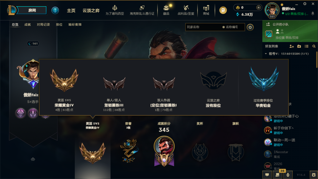 段位:161级 坚韧黑铁III