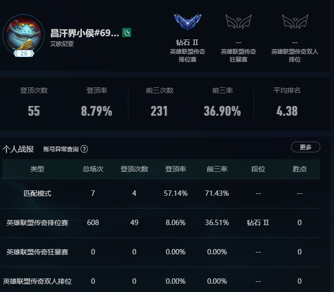 段位:28级 当前赛季无
