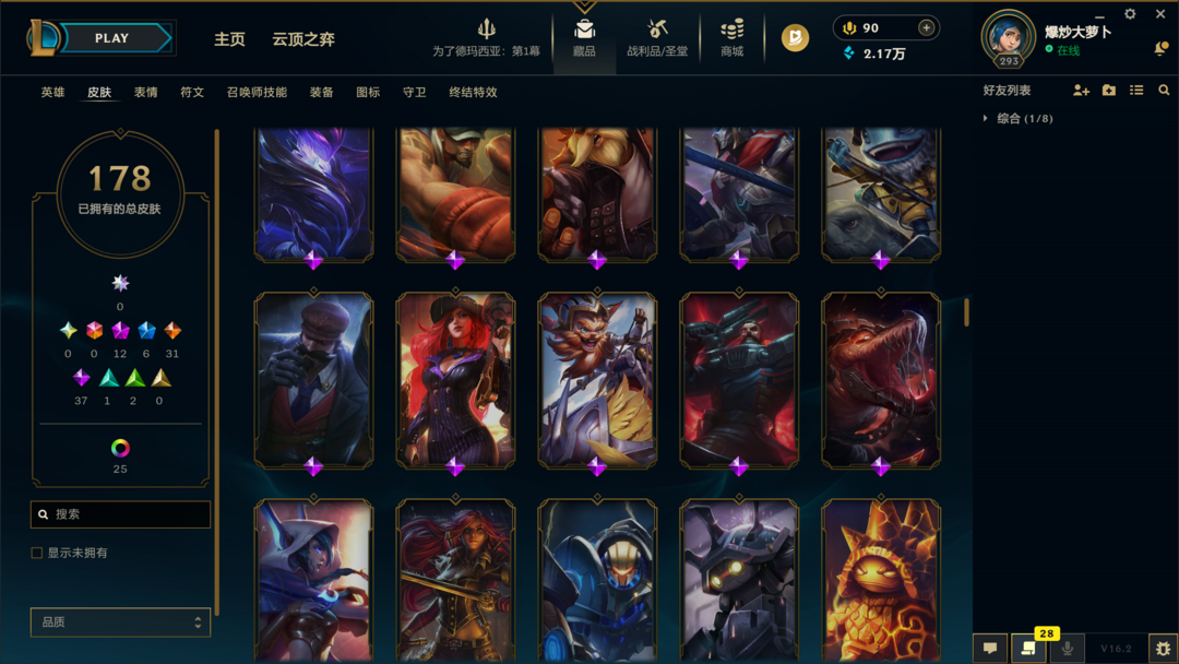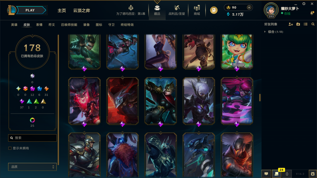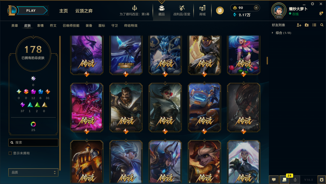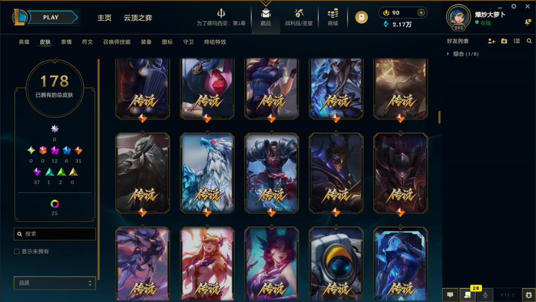 187皮肤〓10至臻海克斯〓神王天煞劫〓黑夜亚索〓冰雪节限定