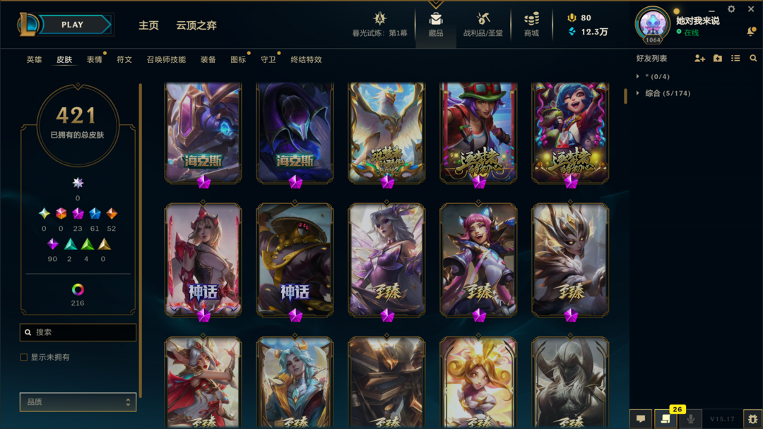 段位准█1000皮肤〓30至臻海克斯〓神王女帝〓神龙尊者系列〓舞龙卫翼剑仙〓冰雪节限定
