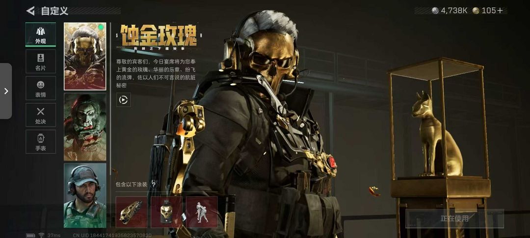 装备描述:6高特勤两刀六皮 28金枪皮 北极星 黑海 红狼蚀金玫瑰 露娜黑天际线