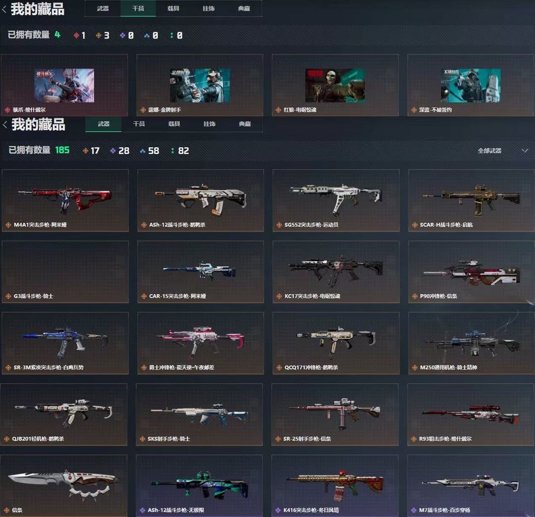装备描述:信条刀 麦小雯红皮 骇爪 维什戴尔 20金皮 赛季六格 安全箱 红狼-电锯惊魂
