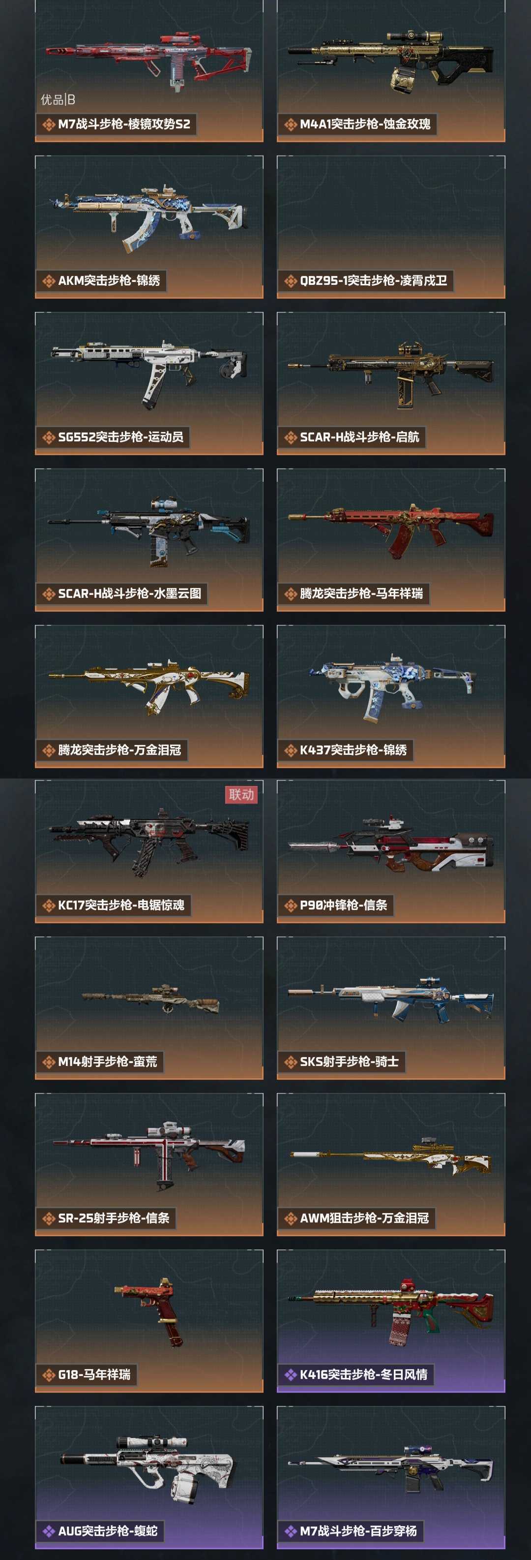 装备描述:禁止开挂毁号!都能找到人!威龙/凌霄戍卫❤刀皮北极星❤黑天际线❤水墨云图❤️金牌射手❤电锯惊魂❤飞虎