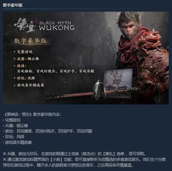 实惠超市可存档Steam版《黑神话:悟空》328豪华版DLC道具