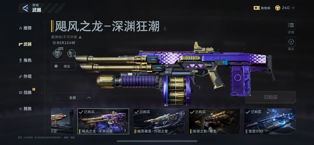 上号看描述 3金色武器皮肤1金色角色1机甲皮肤1金刀❤️缇娜❤️幽冥毒皇❤️飓风之龙❤️能源之影