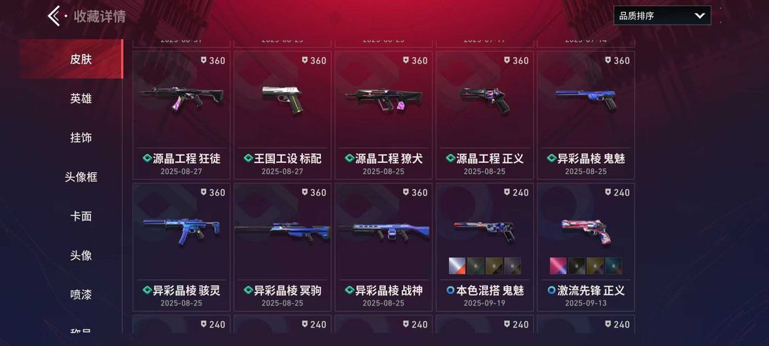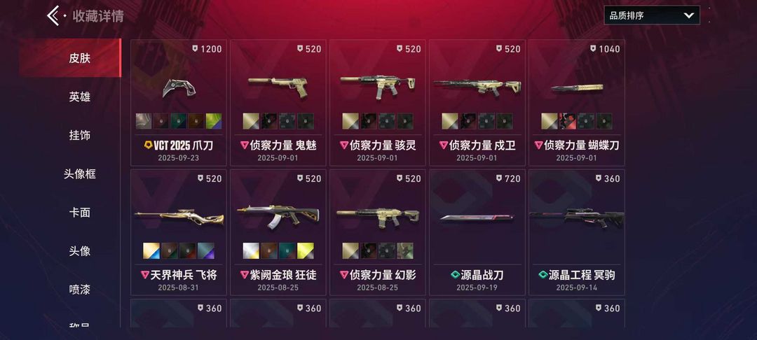 观察期VCT爪刀 侦查力量全套 天界神兵 飞将 紫阙金琅 狂徒 22级收藏家18英雄