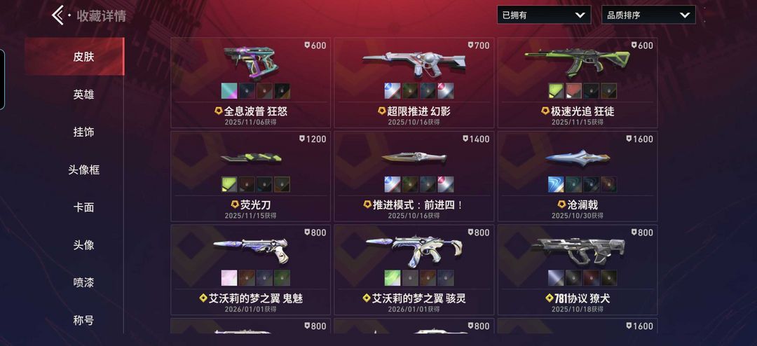 赋能框+猫猫套+堕天套❤5刀7枪❤盖亚+显卡+狂沙弑天❤超限幻影+781獠犬+全息狂怒+朋克鬼魅❤