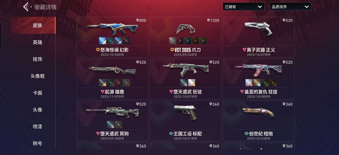 VCT爪刀❤盖亚+堕天遗武狂徒❤怒海惊澜幻影❤堕天遗武冥驹❤起源雄鹿+离子正义❤开挂必究!