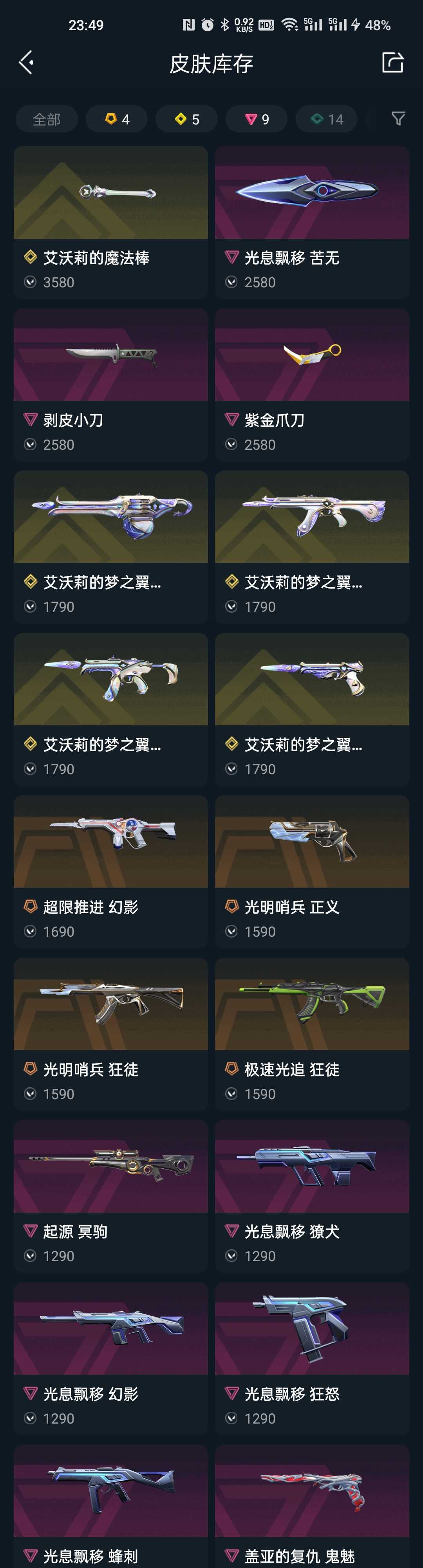 剥皮小刀⭐紫金爪刀⭐艾沃利的梦之翼套全⭐光息漂移套全⭐极速光追狂徒⭐光明哨兵狂徒正义⭐超限推进幻影