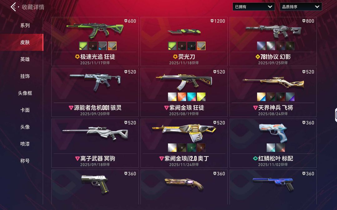 显卡战刀❤️紫金+显卡狂徒❤️781幻影❤️天界飞将❤️离子大狙❤️漫画骇灵紫金奥丁