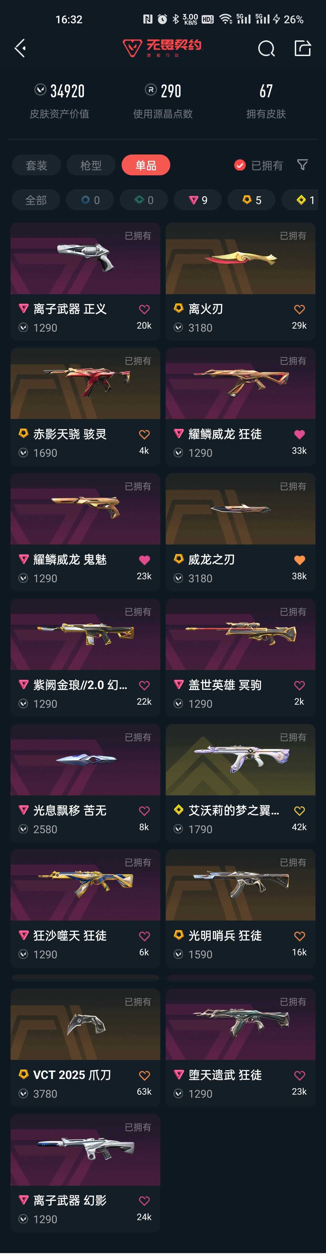 观察期离火刃⚡VCT爪刀⚡光息漂移苦无⚡耀麟威龙套全⚡狂杀艾沃利光明堕天狂徒⚡离子幻影正义⚡赤影天骁