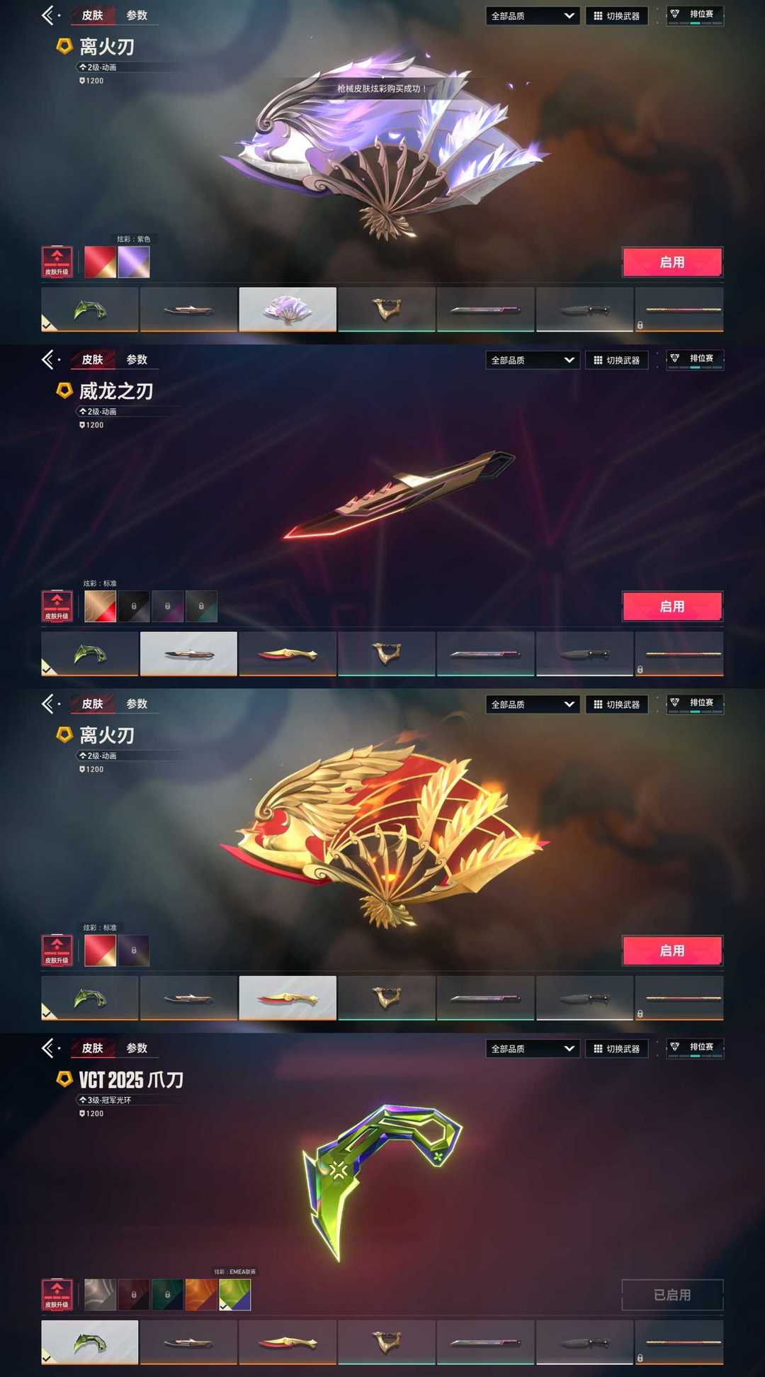 特惠日租❤️VCT爪刀~离火刃❤️耀鳞威龙套❤️盖亚艾沃莉苍龙狂徒❤️怒海惊澜醒狮幻影苍龙堕天冥驹